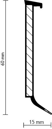 Twardy rdzeń z HDF-u otoczony bezchlorowym polimerem PP/TPE z elastyczną krawędzią w dolnej części listwy. Do środka listwy wkleja się ozdobny pasek w kolorze wykładziny podłogowej ( szerokość 40mm, grubość do 4 mm).