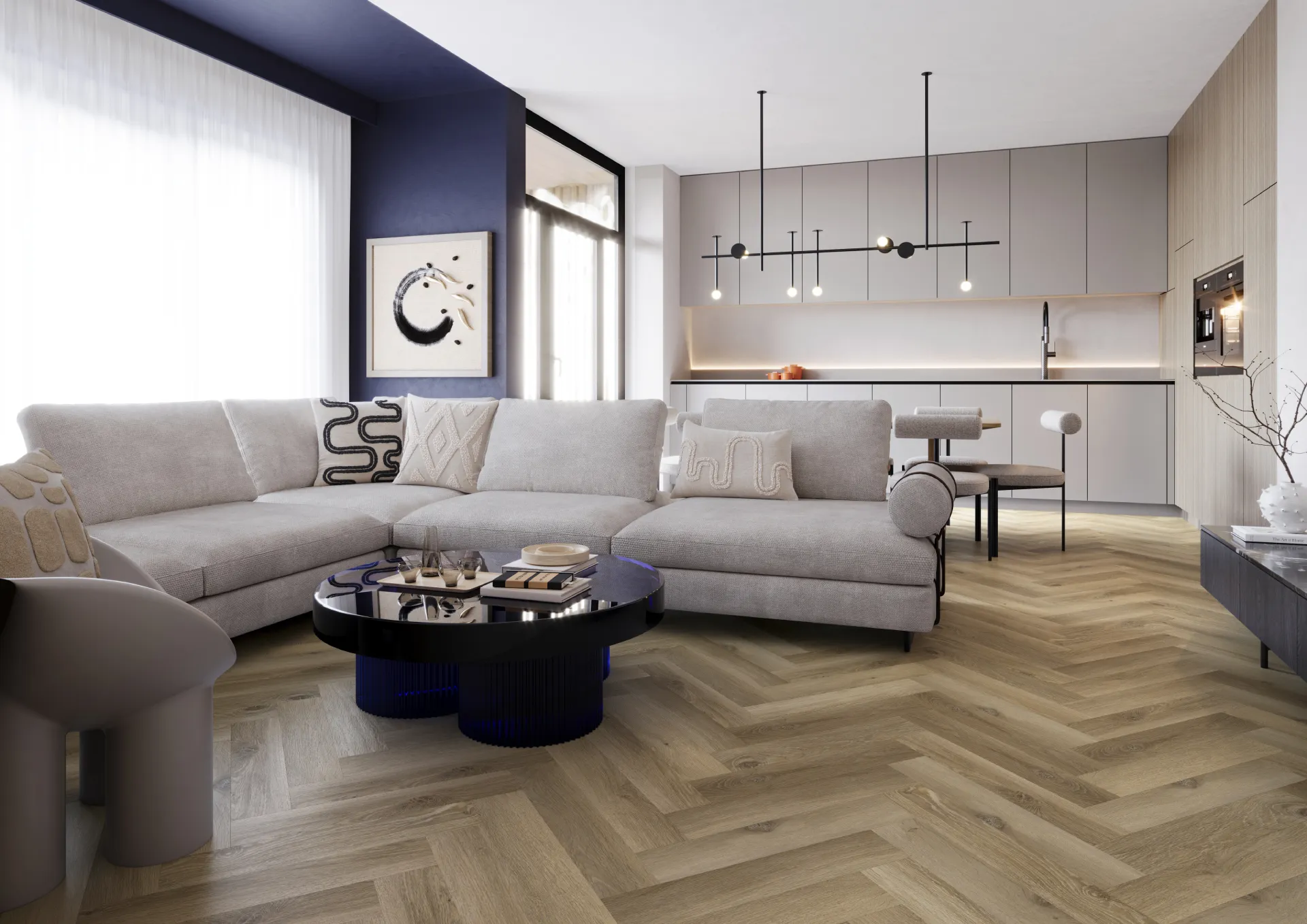 Glamis to dekor utrzymany w naturalnych, ciepło-beżowych tonach, w których subtelna gra słojów nadaje podłodze autentyczny i wyraźnie drewniany charakter. Widoczne, ale nienachalne usłojenie wzbogaca powierzchnię o organiczną głębię, a równomierna struktura jodełki wprowadza do wnętrza rytm i uporządkowaną elegancję. Całość tworzy efekt spójny, przyjazny i wyjątkowo naturalny.