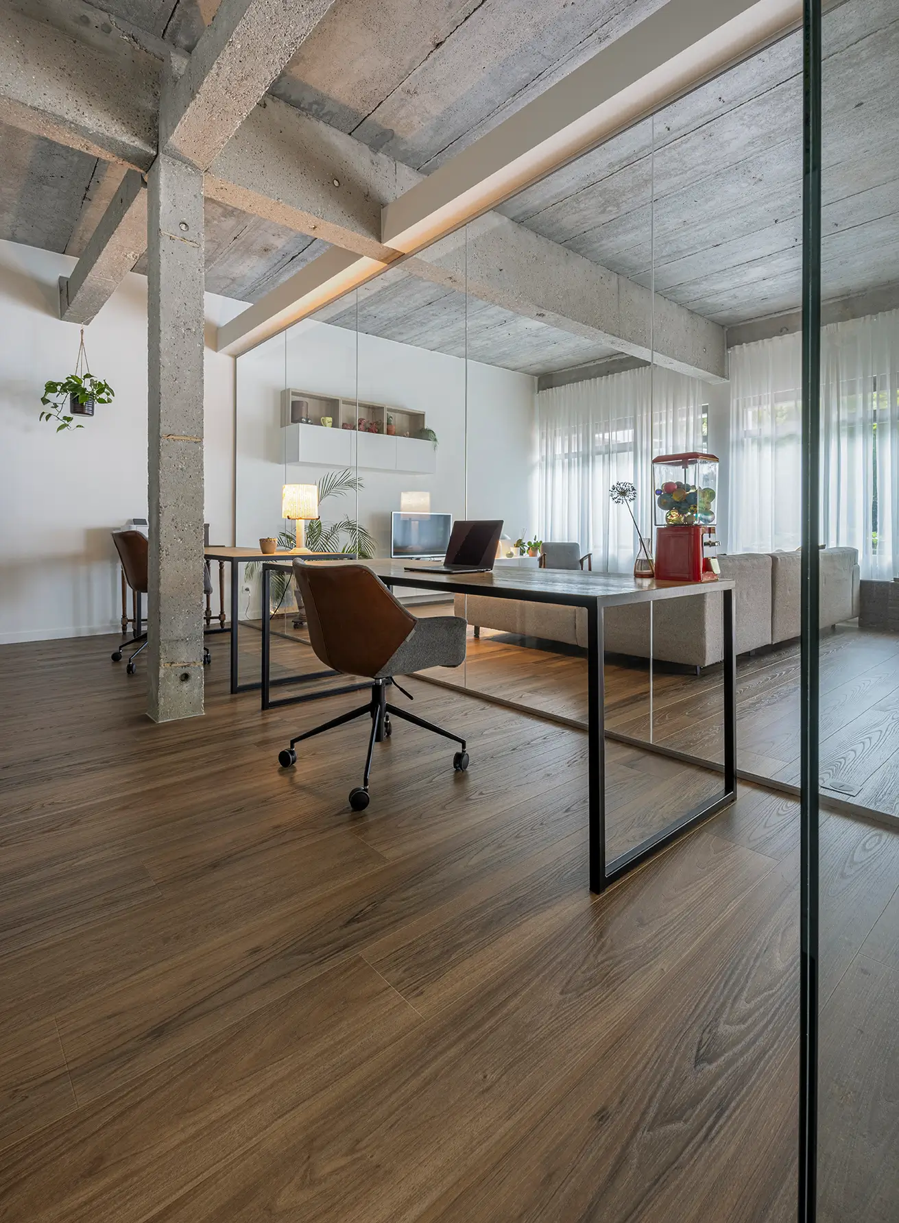W nowoczesnych wnętrzach często stosuje się dużo twardych powierzchni: szkło, beton, metal.