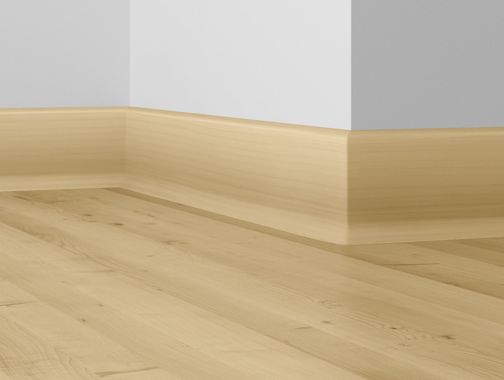 Wytrzymały rdzeń z HDF-u otoczony bezchlorowym polimerem PP/TPE z elastyczną krawędzią w dolnej części listwy.